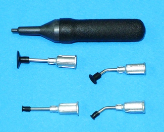 The Handy-vac is specifically designed to pick up any item that has a flat surface. This handy tool eliminates all problems caused by the use of human hands and tweezers.